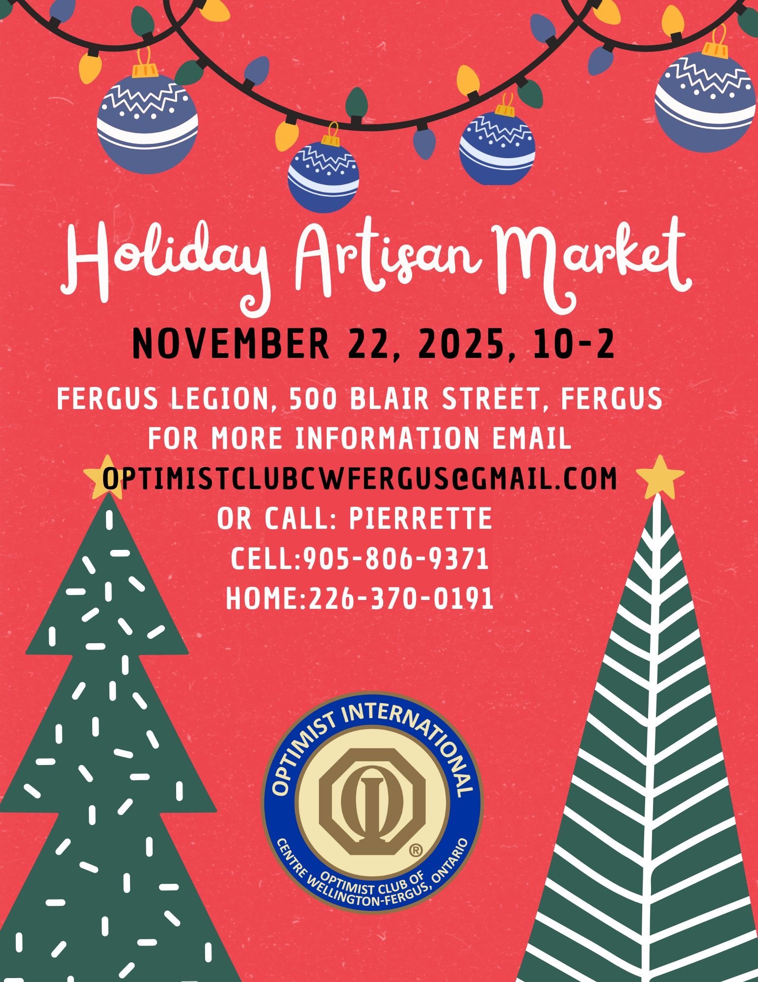 The location of the Holiday Market will be known to several of you as the Fergus Legion, 500 Blair St. What you may not be aware of is that the Fergus Legion is rebranding its main event space to Riverside Events Centre. Yours truly just happens to be the Events Manager for REC. Please visit our website listed below and let me know if I can be of any assistance to you for upcoming events you may be planning or involved with!